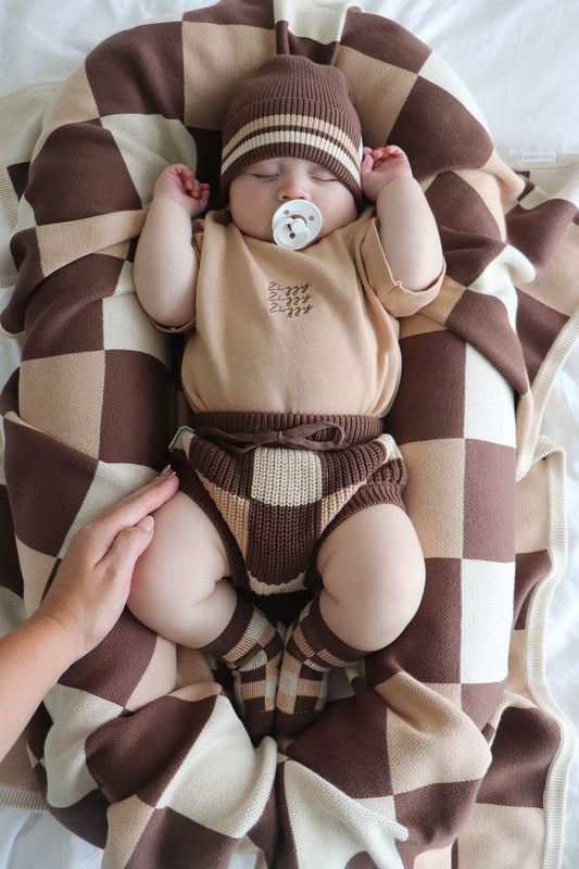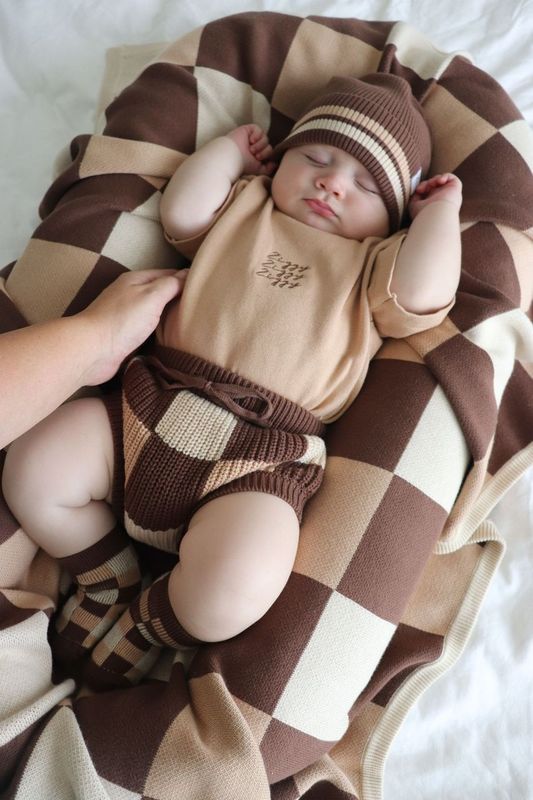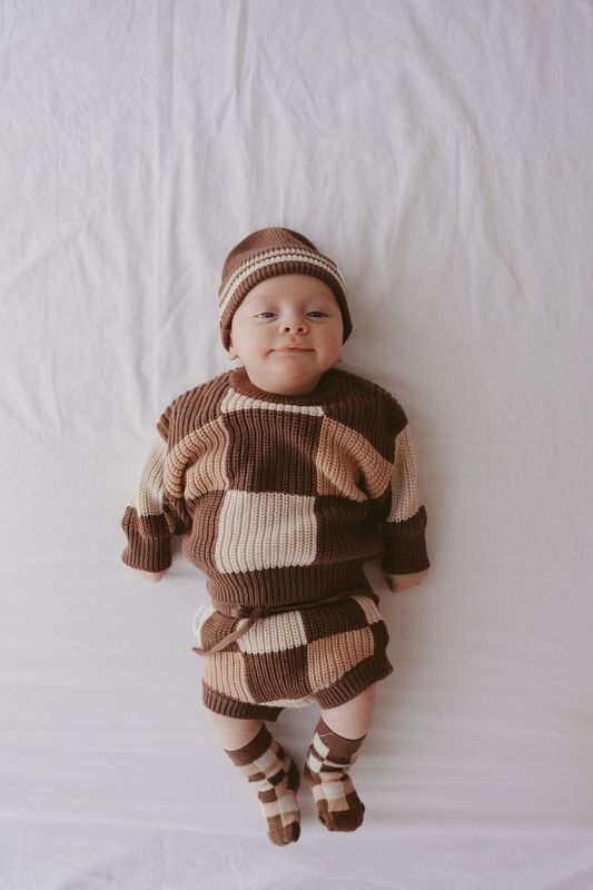 Chunky knit bloomers featuring our Checks design. Elastic waist and functional drawstring to create the perfect fit. Mix and match with items from our Theo + Checks Collections.
