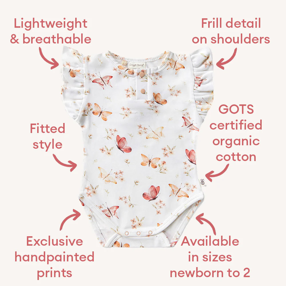 Butterfly Short Sleeve Organic Bodysuit with Frill