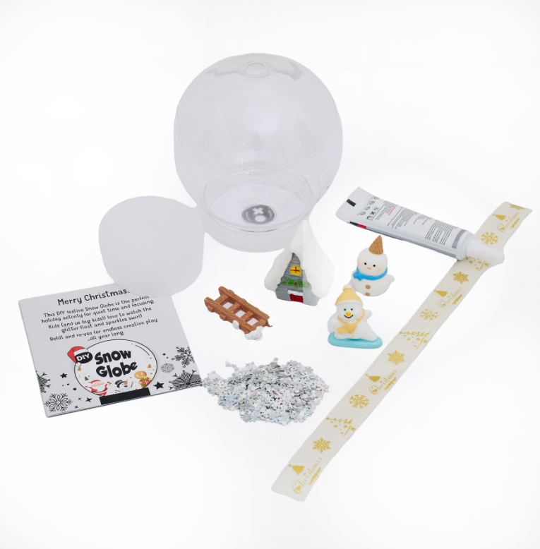 Our DIY Snow Globe Kit includes everything your child needs to make their very own festive snow globe - no extra supplies required! Simply fill, decorate, shake, and watch the snow fall around your chosen holiday scene.