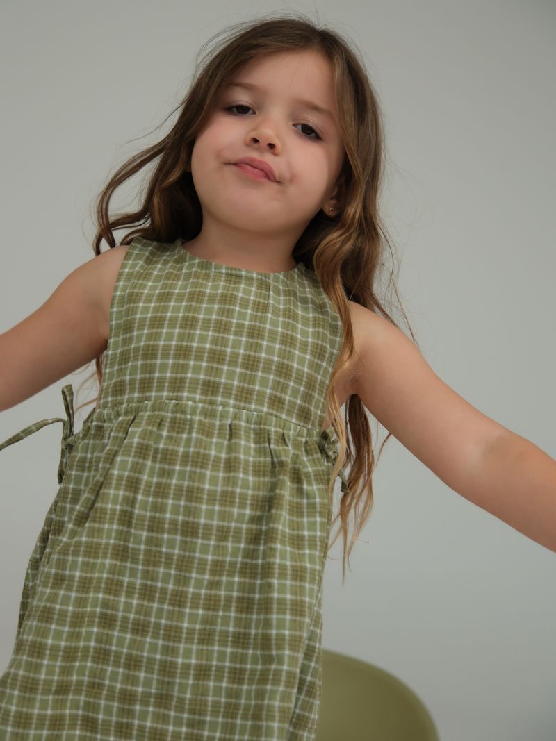 Cotton dress in our beautiful Thyme fabric. Adjustable ties at waist and buttons on the back for easy on/off. Mix and match with items from our Christmas Collection.