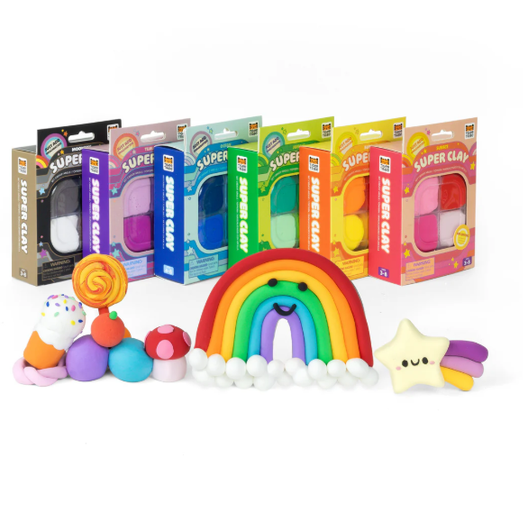 Little hands can bring big ideas to life with this soft, lightweight, air-drying clay. Super Clay invites kids to roll, knead and sculpt vibrant colours to create two fun characters — using step-by-step visual instructions, or to shape whatever their imagination comes up with. No oven needed — just air-dry for play or display.