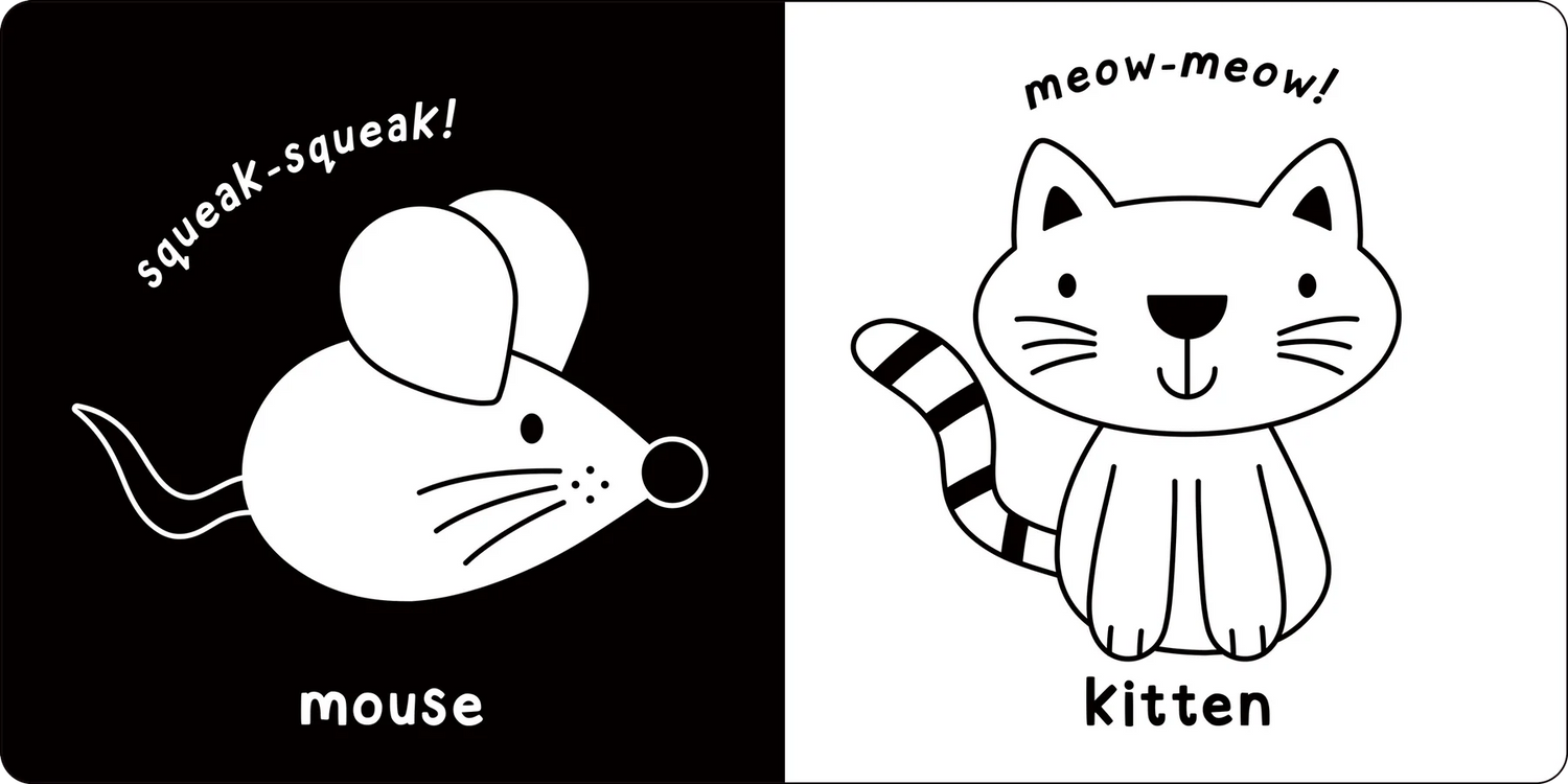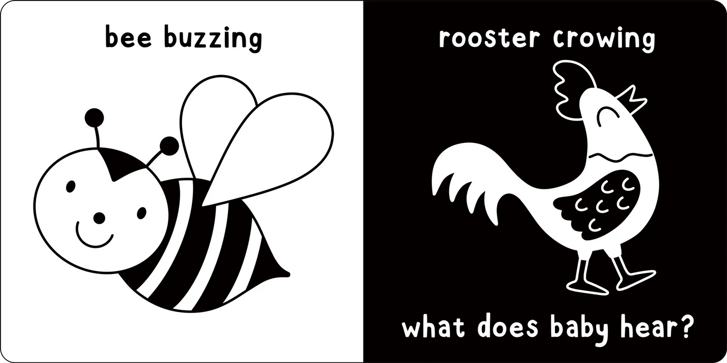 - Simple black-and-white images offer healthy stimulation, encouraging focus and visual exploration!